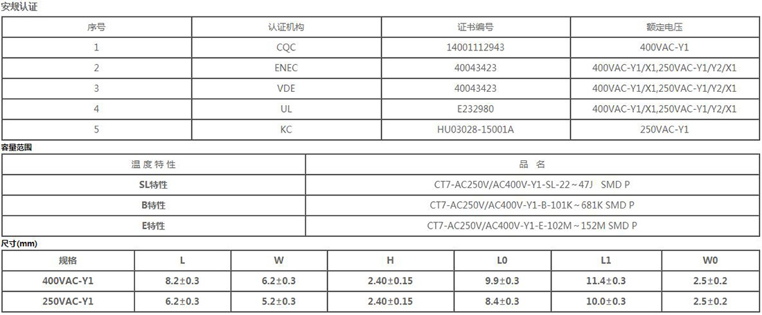 - X1/Y1系列電容器取得UL/CQC/VDE/ENEC/KC等安全認證