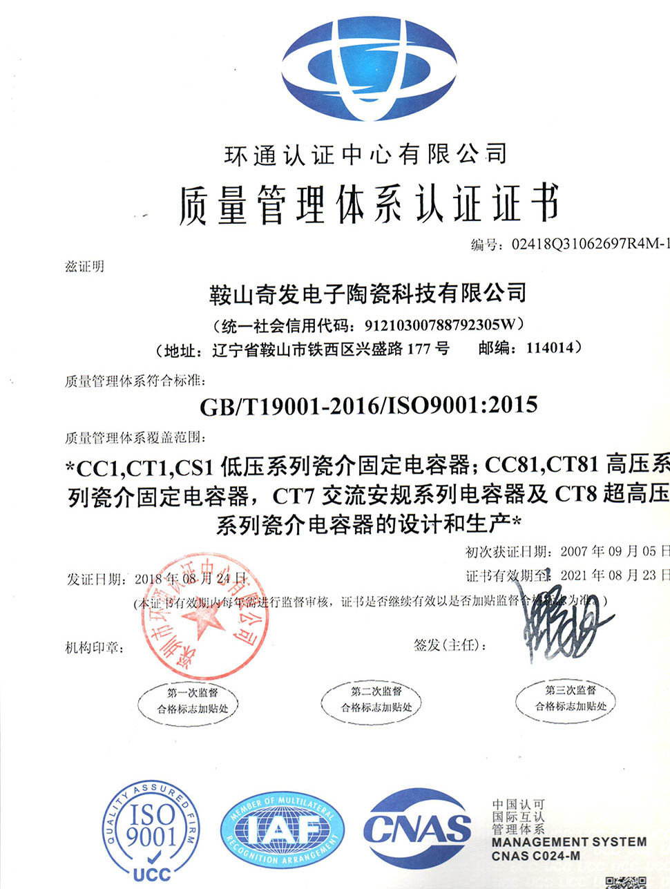 ISO-9001質量體系認證證書(中文)